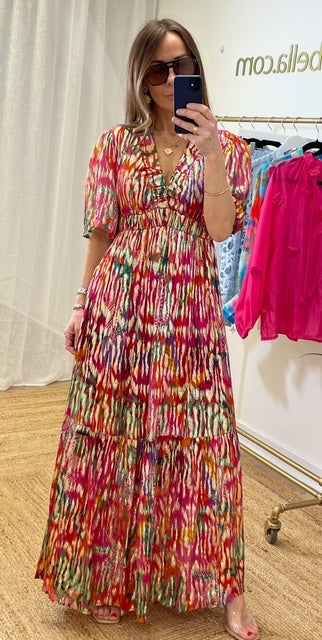 Sorrento Pink Gold V Neck Open Back Maxi Dress