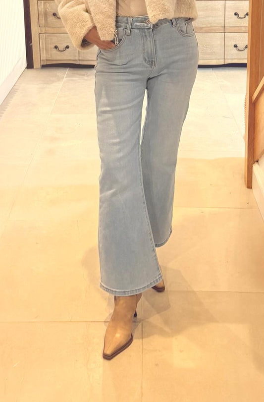 Sailor Wide Cropped Blue Jean Gold Buttons