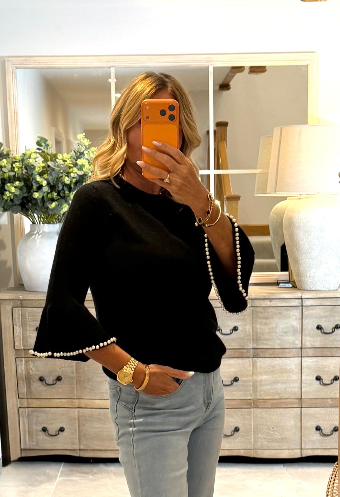 Katie Jumper with Bell Sleeves with Pearl Edging