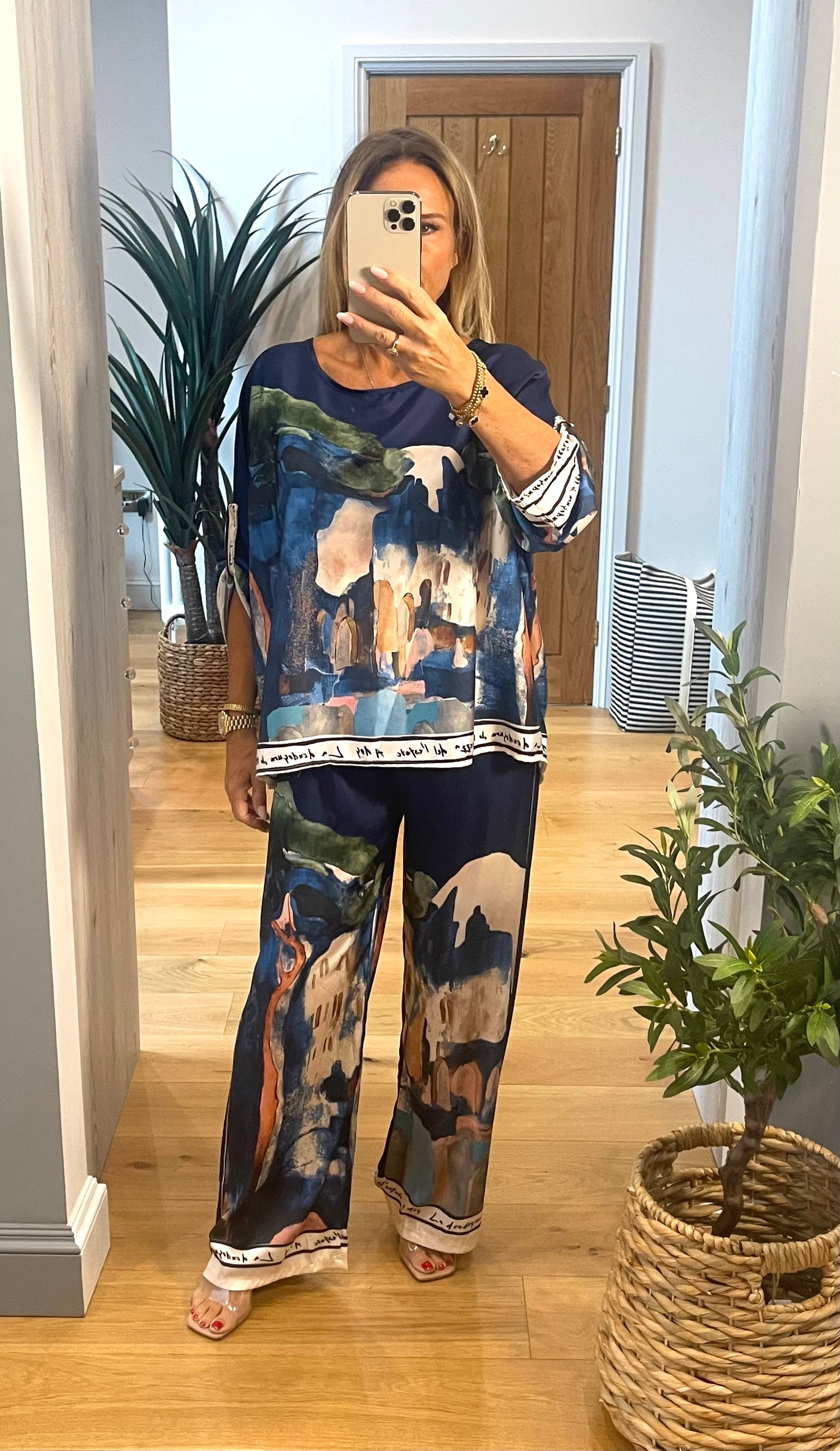 - Satin feel wide leg trouser co-ord with Italian inspired fabric print